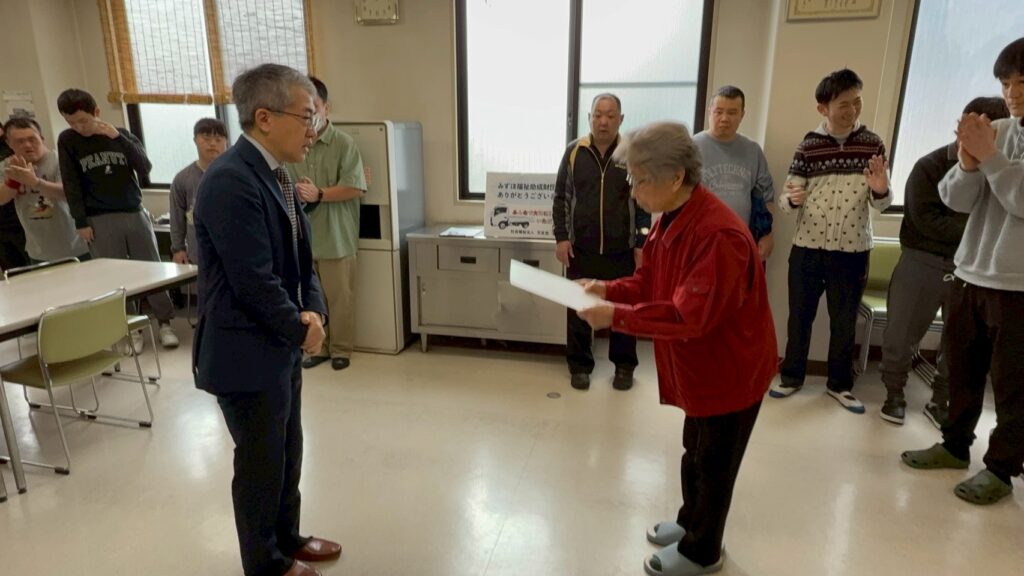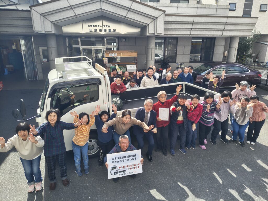 みずほ福祉助成財団 車両贈呈式🚚 2026.03.04 先日納車した新トラックの贈呈式を開催しました。 あたたかい雰囲気の中、式をすることができました。 最後はみんなで記念撮影📷 来所して下さった、みずほ銀行広島支店 副支店長 織田信行様ありがとうございました。