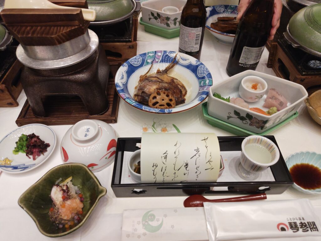 今日一日たくさん歩いて疲れたあとは、今日宿泊させてもらう「琴参閣」に到着です。
