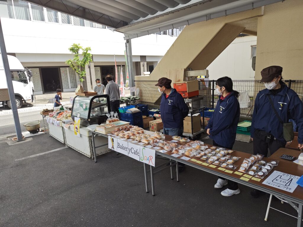 農園自慢の野菜や第二作業所で作られたお手製スイーツ、『社会福祉法人 交響 SOAR(ソアー)きつつき』 さんのおいしい手作りパンがたくさん並びました🍞。